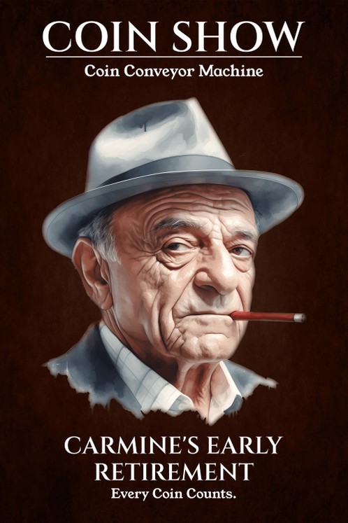 Carmine’s Early Retirement is a Coin Show™ unit—a character-driven coin conveyor where every run is a performance.