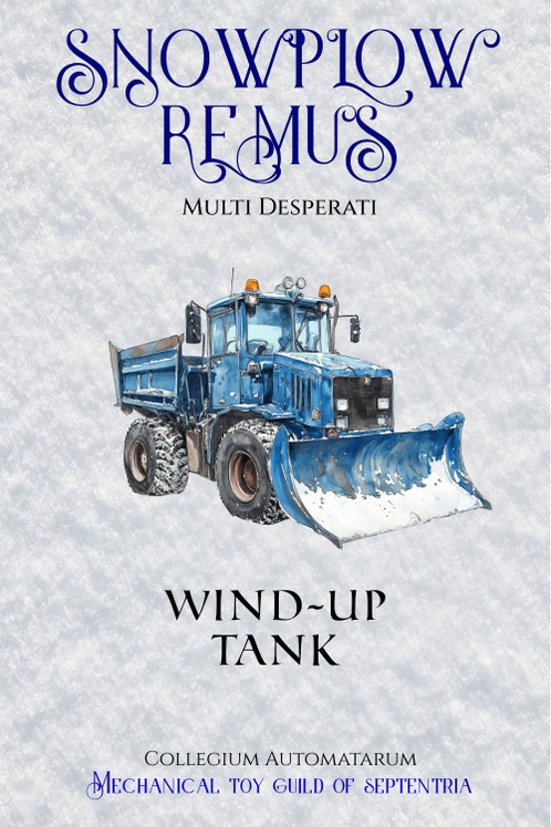 A modified wind-up tank from the world of Santa’s War, Snowplow Remus leads Santa Lux’s traveling party through blizzards and frozen roads.